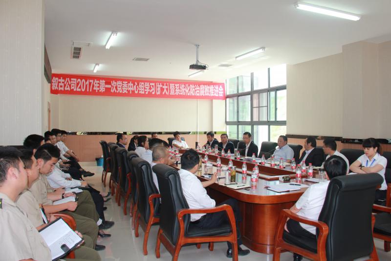 5月4日,敘古公司2017年第一次黨委中心組學習(擴大)會暨系統化防治腐敗推進會在公司一樓會議室召開。公司黨委書記、董事長王中林,黨委委員、總經理劉小波,黨委委員、紀委書記、工會主席李興明及全體黨員、干部參加了會議。